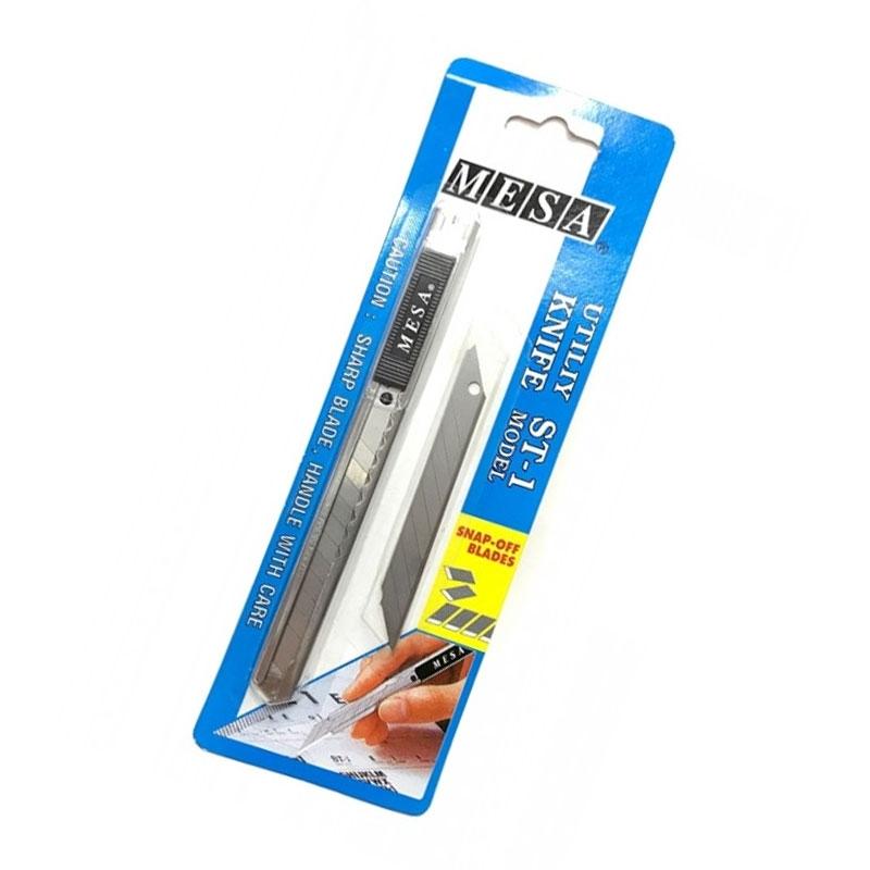 Dao Rọc Giấy Mesa ST-10 Dao rọc giấy mesa ST-10 được làm từ chất liệu thép cao cấp, không gỉ, sắc bén, độ bền cao. Cán dao được bọc kim loại cứng cáp, chịu được