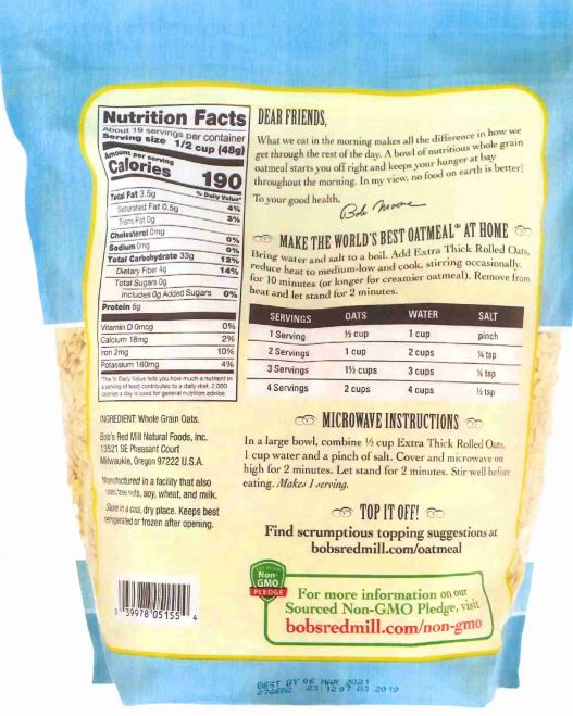 Yến mạch cán dày Bob's Red Mill 907g của Mỹ - Extra thick Oat Bob's Red Mill Thick Oats 907g - Xuất xứ: Mỹ - Thương hiệu: Bob's Red Mill - HSD: 730 ngày kể