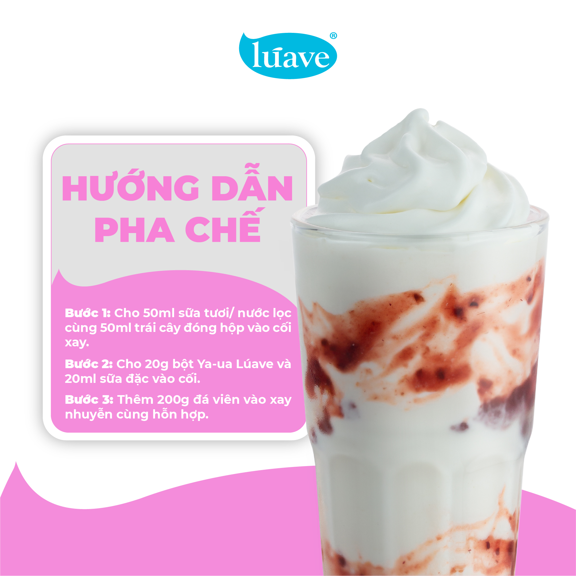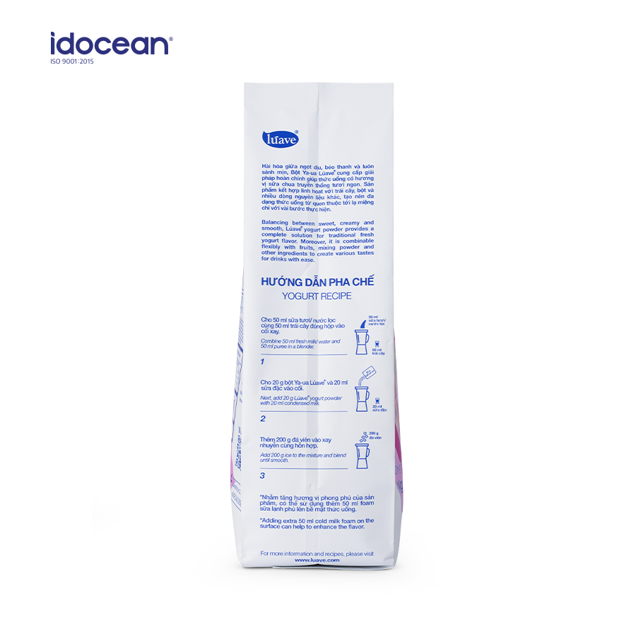 Mua tại TiktokBột Yogurt Lúave - Bột Ya-ua Lúave - 500g Đối với sữa chua thông thường khi dùng trong pha chế phải được bảo quản trong tủ lạnh, thời gian sử dụng ngắn. Chủ quán thường xuyên gặp phải sự cố hao hụt nguyên liệu, và đau đầu trong vấn đề giải quyết date sản phẩm. Vậy làm thế nào để đưa vị chua dịu, béo nhẹ của sữa chua vào các món sữa chua, đá xay mà vẫn tiện lợi và tối ưu giá thành. Câu trả lời chính là dùng Bột Yogurt Lúave. Bột Yogurt Lúave chuyên dùng trong pha chế các món sinh tố và đá xay, thay thế sữa chua thông thường, làm gia tăng hương vị béo dịu và đặc sắc cho ly sinh tố trái cây. ĐẶC ĐIỂM NỔI BẬT