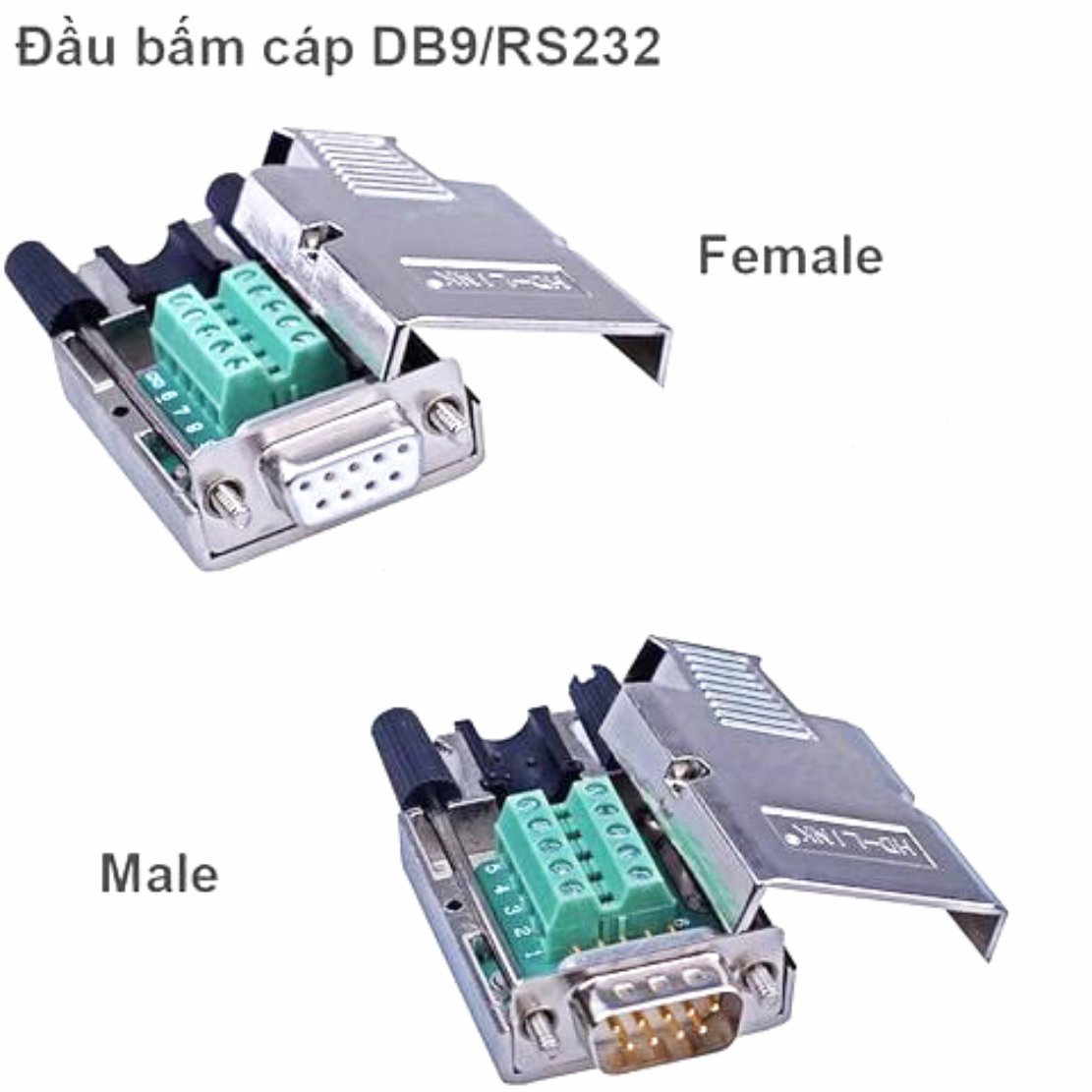 Đầu bấm DB9, RS232. Sử dụng tạo ra cáp RS232, cáp COM có chiều dài, sơ đồ khác nhau theo từng loại máy.