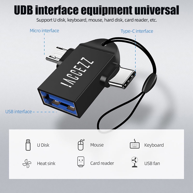 ️1. Bộ chuyển đổi OTG 2 TRONG 1, USB 3.0 Female sang Micro USB Male và Đầu nối USB C Nam Hợp kim nhôm trên bộ chuyển đổi Go.