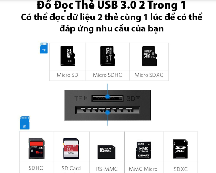 - Tính năng: Đầu đọc thẻ nhớ kết nối cổng USB 3.0 + OTG Micro