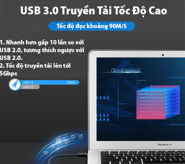 - Với chuẩn USB 3.0, tốc độ hỗ trợ lên đến 5Gbps