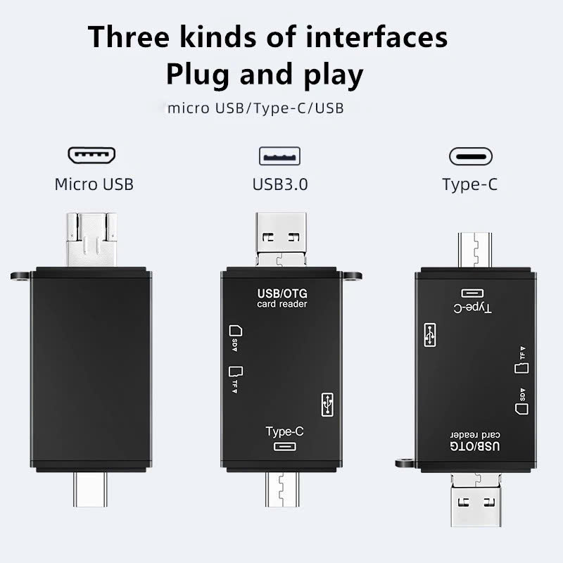 Tên: Loại giao diện 6 TRONG 1: USB 2.0, Micro USB, Loại C, Khe cắm thẻ nhớ TF và Giao diện USB và khe cắm SD