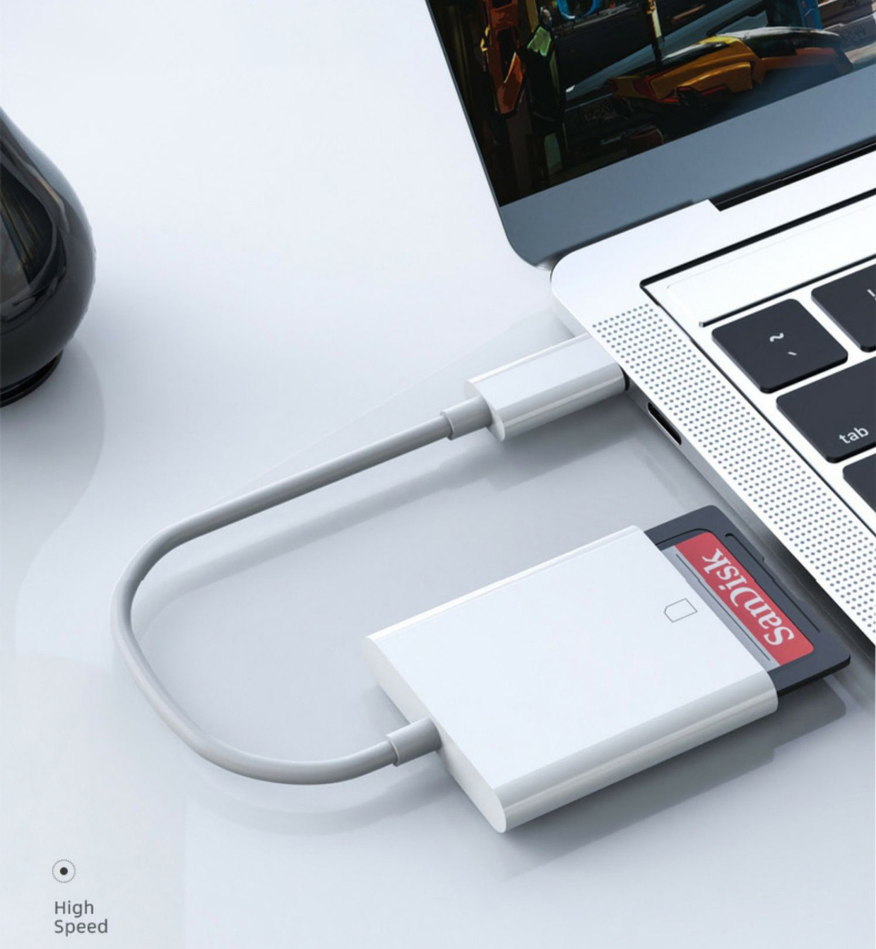 1. Input 1: USB-C 3.1 Gen 1 Male 2. Output: TF 3.0 Card Slot 3. USB-C 3.1 Gen 1 speed up to 5Gbps, 4. Supports Micro SD(TF) card 5. Memory card transfer speed:≈100MB/S 6. 512G