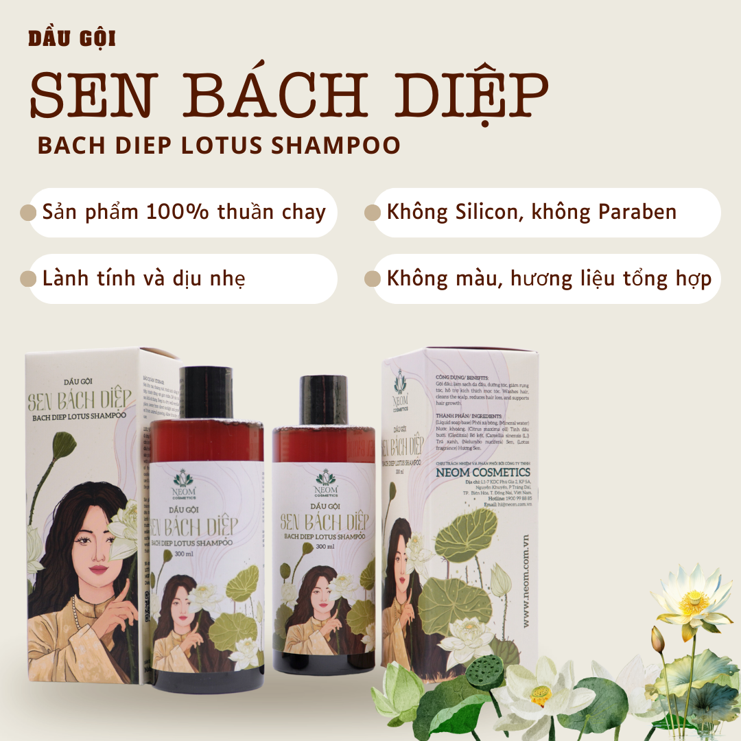 Dầu gội Sen Bách Diệp là dòng dầu gội thảo dược thiên nhiên với nguyên liệu 100% thuần chay. Sản phẩm được chiết xuất từ các thành phần thảo mộc quý như tinh dầu bưởi, bồ kết, trà xanh, sen, kết hợp với phôi xà bông và nước khoáng, mang đến sự kết hợp hoàn hảo giúp nuôi dưỡng mái tóc khỏe mạnh từ gốc đến ngọn.
