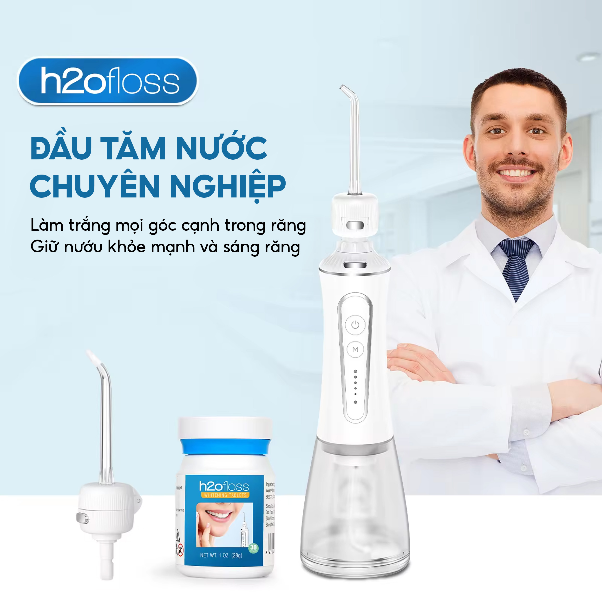 ✨Đầu tăm nước cho máy h2ofloss với 30 viên trắng răng cho hơi thở thơm mát và răng trắng sáng tự nhiên