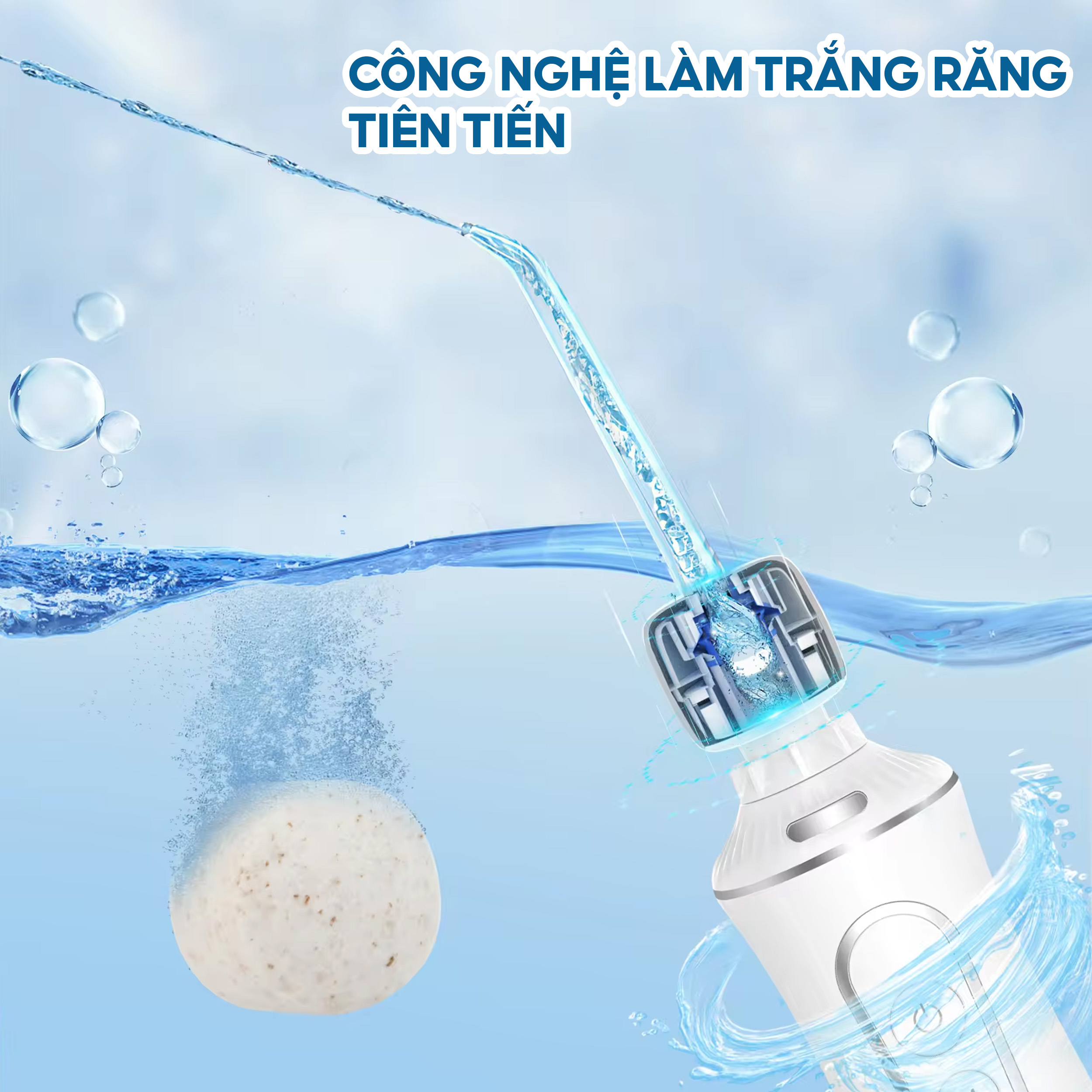 Mua tại Tiktok- Đầu tăm có chỗ đựng viên trắng răng , sử dụng tia nước đẩy các tinh chất trắng răng len lỏi bề mặt và kẽ răng, giúp tăng cường hiệu quả làm trắng răng. -Combo trắng răng với 30 viên dạng nén sử dụng liên tiếp trong 30 ngày cho khác biệt rõ rệt