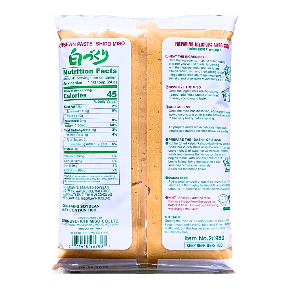 Đậu Tương lên men Shinshu Miso là loại miso trộn sẵn với hương vị tinh tế và phong phú, nước dùng bonito và tảo bẹ được thêm vào để tạo ra một hương vị miso