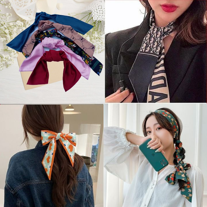 Chi tiết sản phẩm Tên sản phẩm: Dây Buộc Tóc Vải, Khăn choàng cổ Lụa In Họa Tiết Thắt Nơ Phong Cách Hàn Quốc Cho Nữ - Sản phẩm vừa dùng để cột tóc, choàng