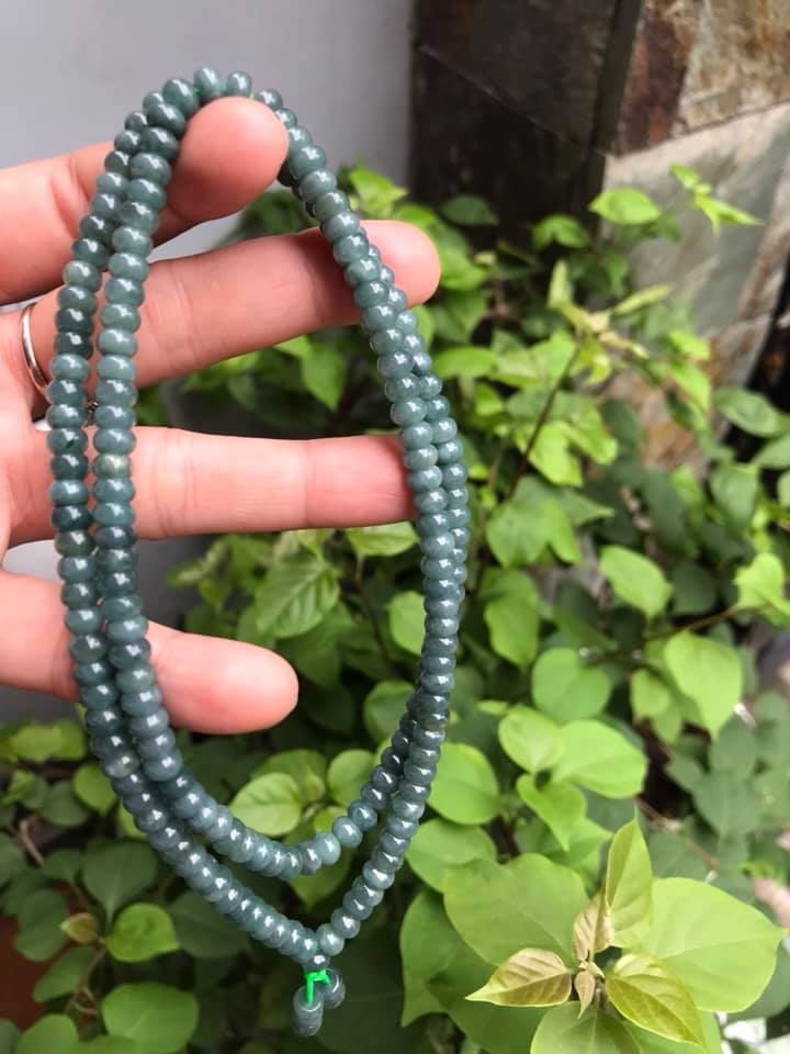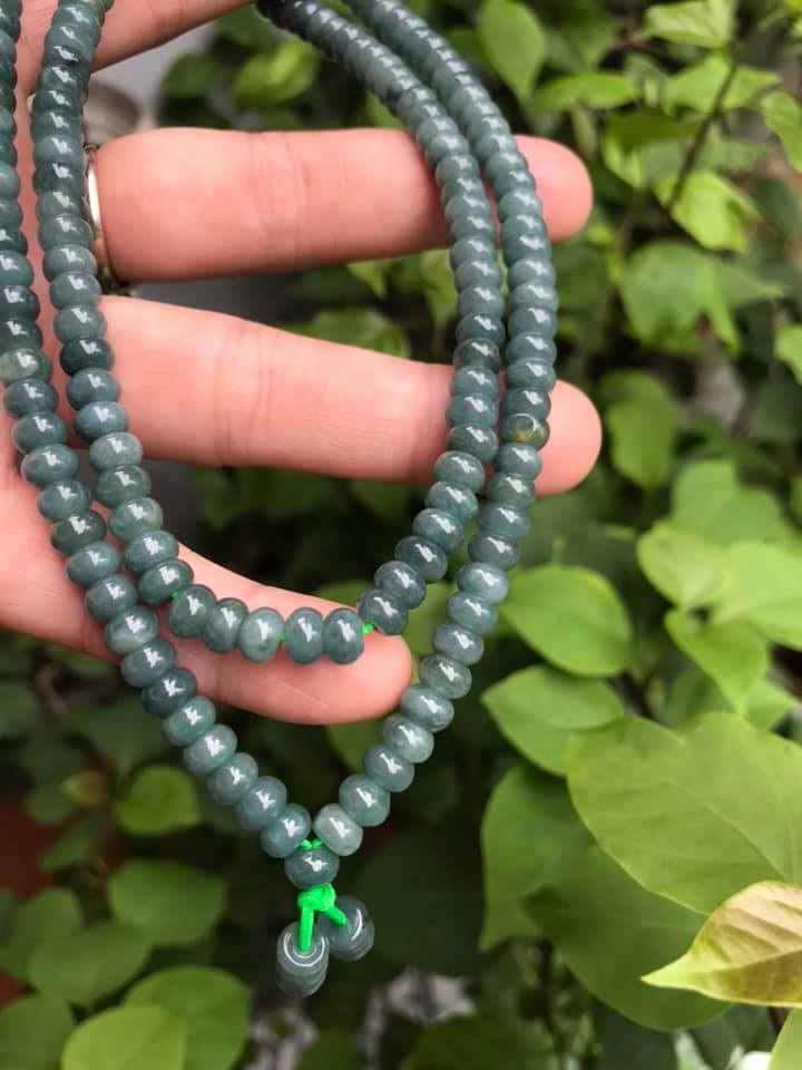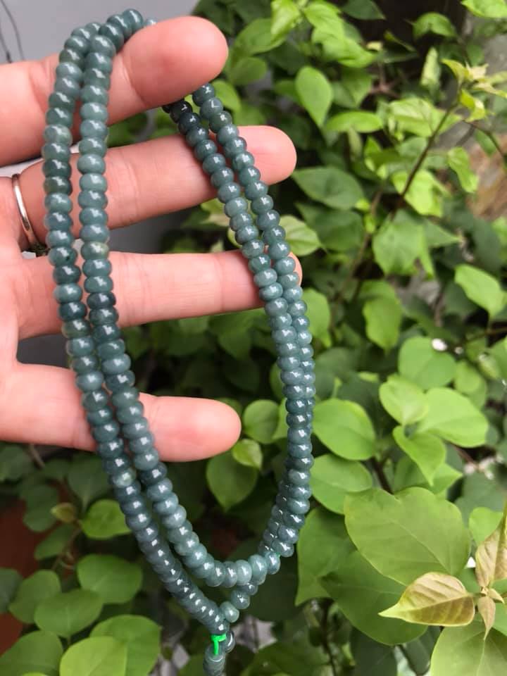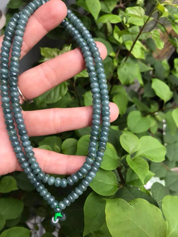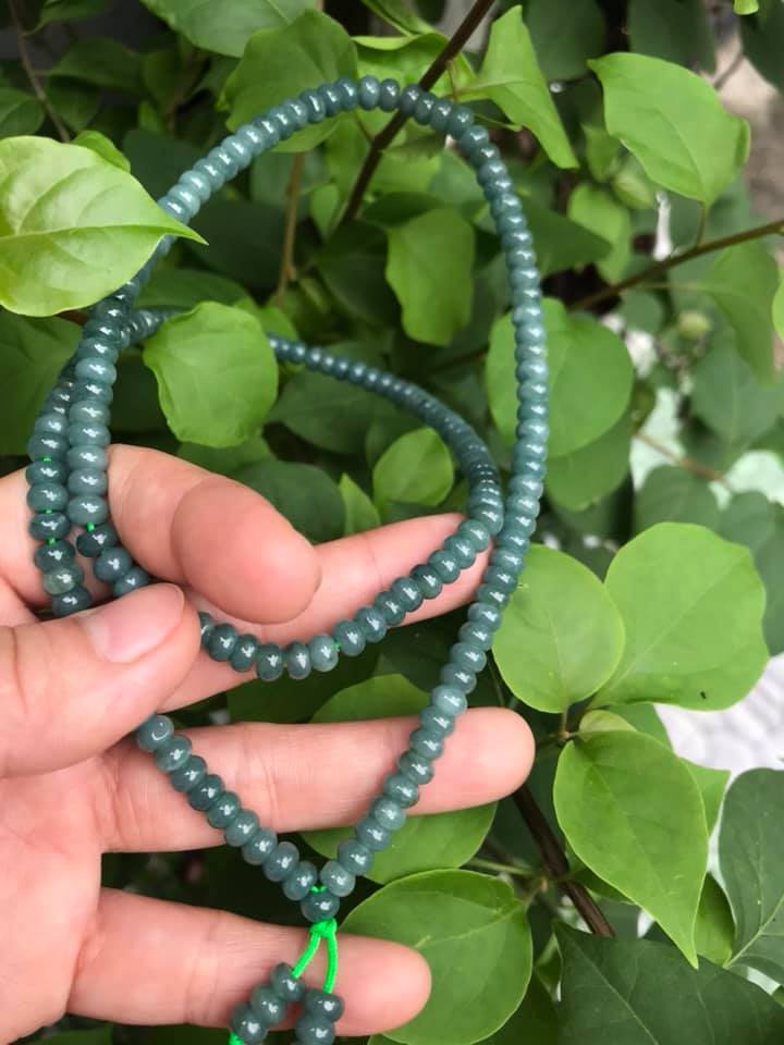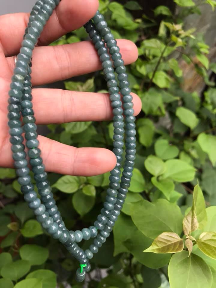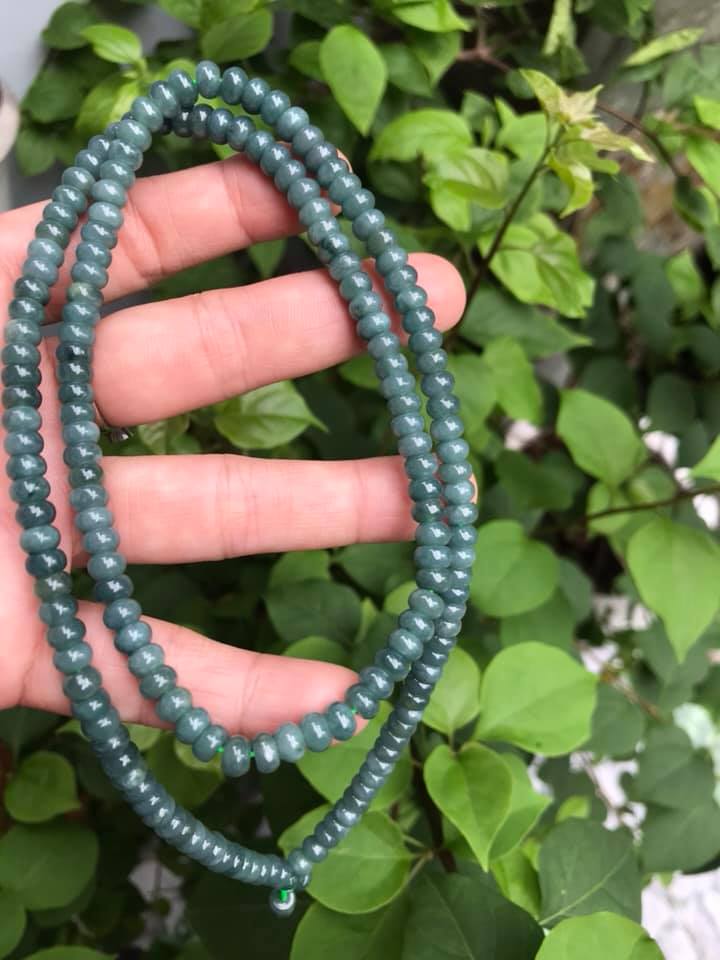 ✨DÂY CHUYỀN DÀI ĐEO CỔ ĐÁ CẨM THẠCH BÁNH XE MÀU XANH ĐẬM NHẸ TỰ NHIÊN TRỒNG CỔ Dài 32cmx dầy 6mm dài mặt trước ngực rất đẹp