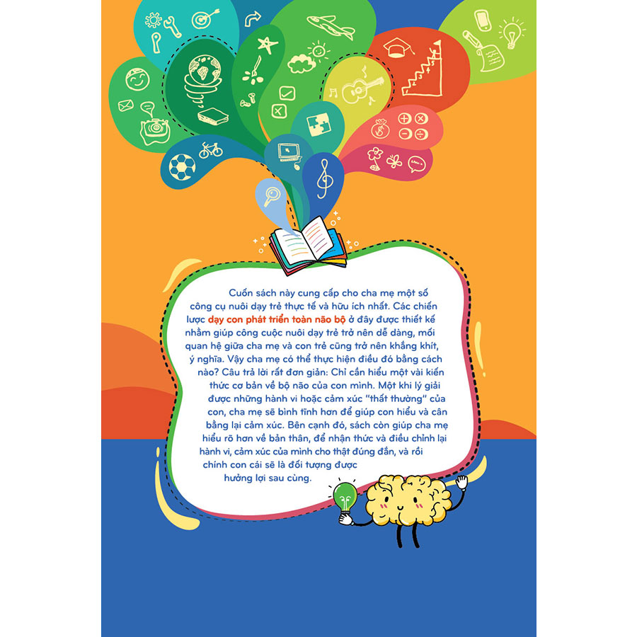 Trong quá trình làm cha mẹ, hẳn các bậc phụ huynh đã đối mặt không ít với những lần con khóc lóc, ăn vạ và những đòi hỏi vô lý của con; nhưng chẳng mấy ai hiểu được nguyên nhân khiến con hành động như vậy. Cuốn sách Dạy con phát triển toàn não bộ sẽ giúp cha mẹ nhìn nhận rõ ràng mọi việc dưới góc độ tâm lý và thần kinh học; một khi tự lý giải được những hành vi vô lý của con, cha mẹ có thể bình tĩnh hơn để giúp con hiểu và điều chỉnh lại hành vi, cảm xúc. Bên cạnh đó, sách cũng giúp cha mẹ hiểu rõ bản thân hơn, để tự điều chỉnh hành vi, cảm xúc của mình trước, và rồi, con cái sẽ là đối tượng được hưởng lợi sau cùng.