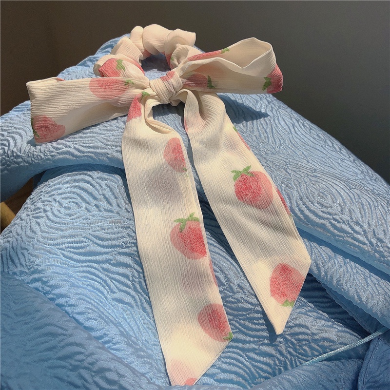 Dây Cột Tóc Hình Nơ Họa Tiết Quả Đào Tiểu Thư Dễ Thương.
