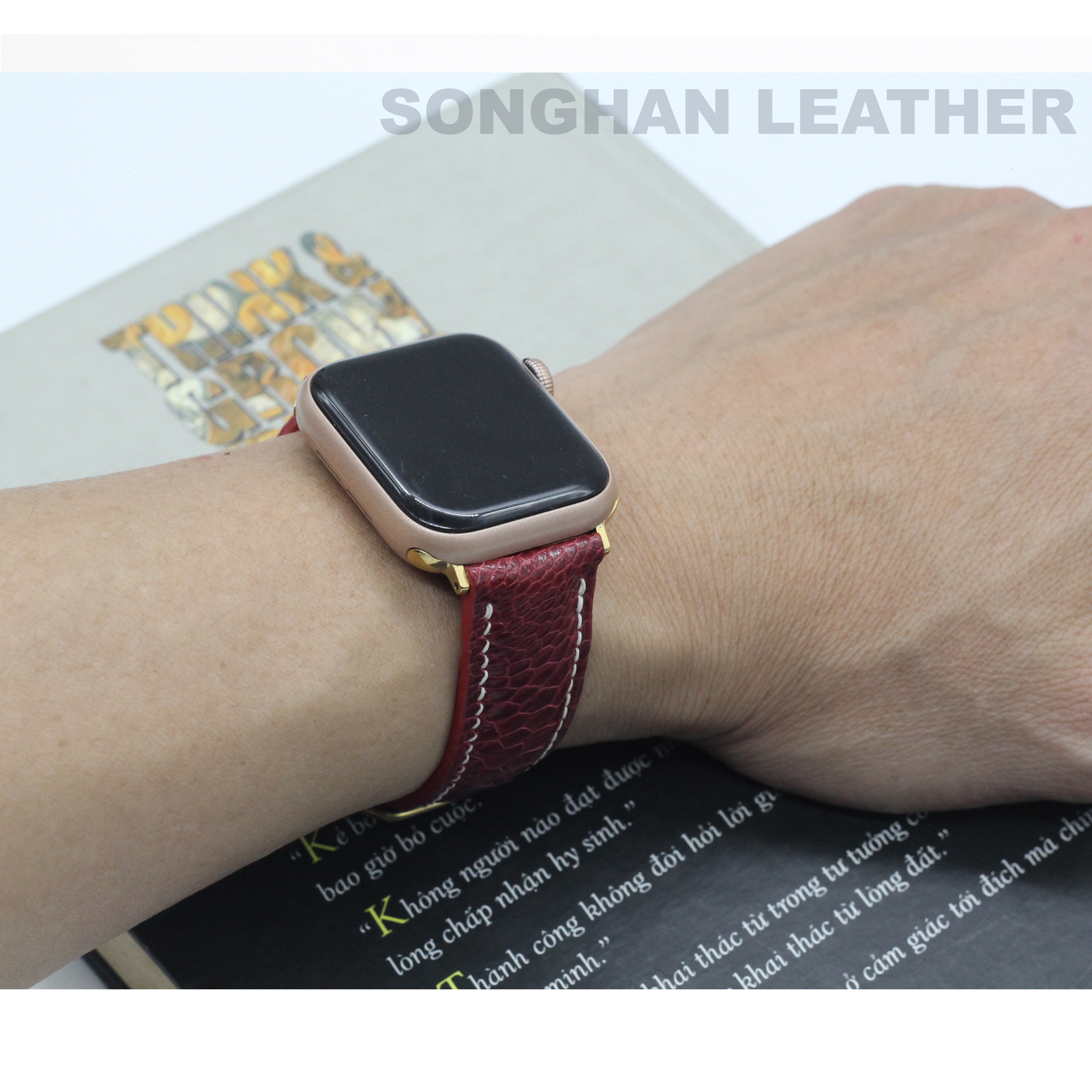 Dây da Apple Watch ĐÀ ĐIỂU handmade cao cấp nhiều màu chỉ trắng size 20mm, 22mm