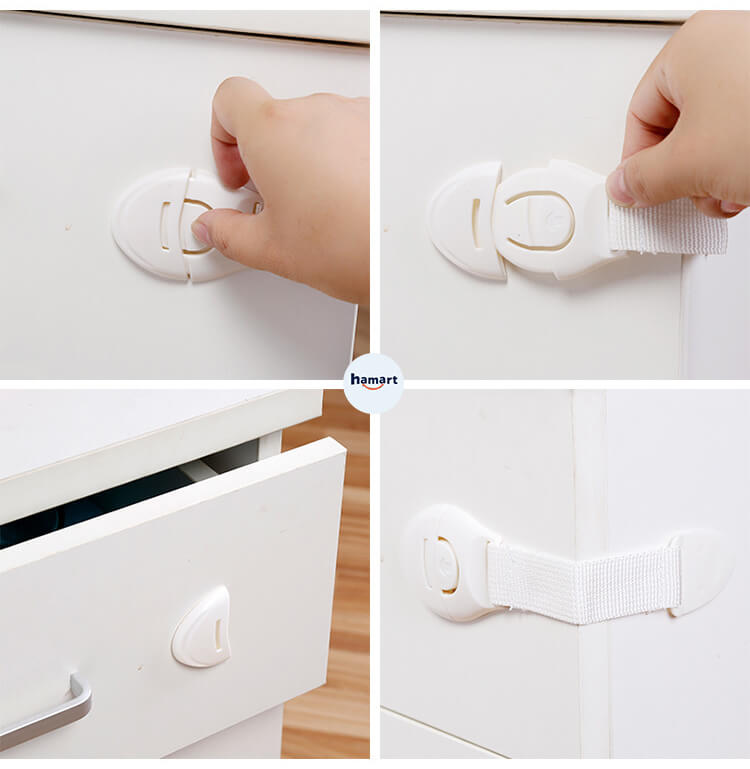- Sử dụng sản phẩm sẽ giúp bạn khóa chặt cửa tủ lạnh ngăn kéo, tủ đồ một cách nhanh chóng, từ đó giảm thiểu nguy cơ gây nguy hiểm cho bé yêu bởi các vật dụng bên trong tủ.