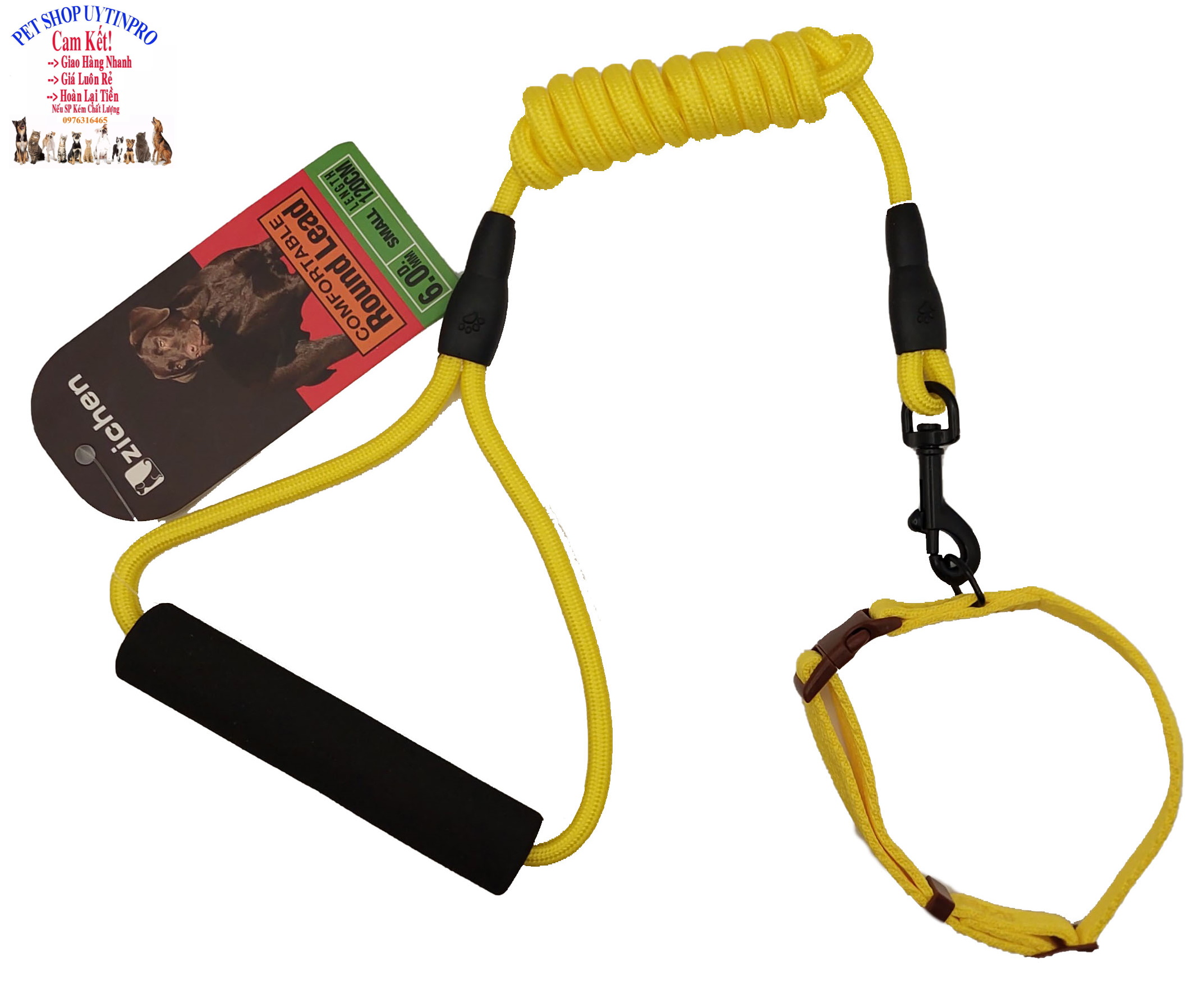 ✨Dây dắt kèm vòng cổ cho Chó Mèo dưới 5kg Bản 1cm Chất liệu dây dù tròn, Hiệu Zichen bền đẹp, an toàn cho thú cưng