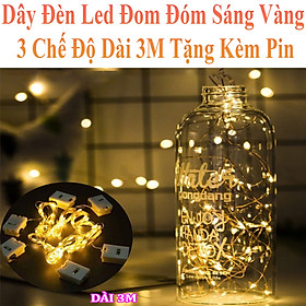 ✨Dây Đèn Led Đom Đóm Sáng Vàng 3 Chế Độ Nháy Dài 3M Tặng Kèm Pin