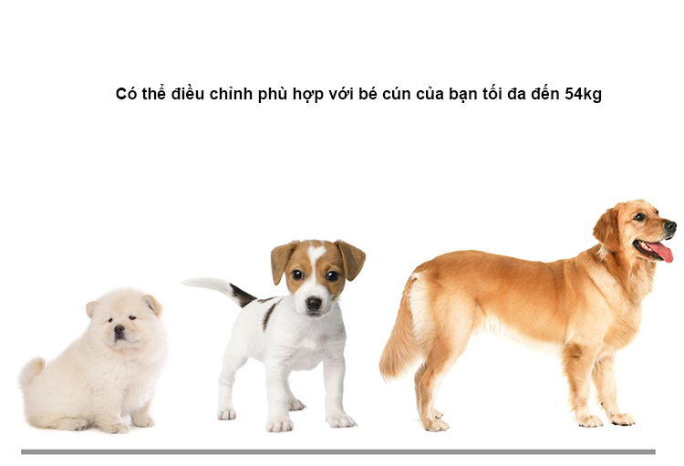 - Có thể điều chỉnh hoàn toàn, phù hợp với những chú chó lớn, vừa và nhỏ từ 15 pound đến 120 pound (7 kg đến 54 kg). Và đối với những chú chó nhỏ hơn, có thể tháo dây đeo ngực.