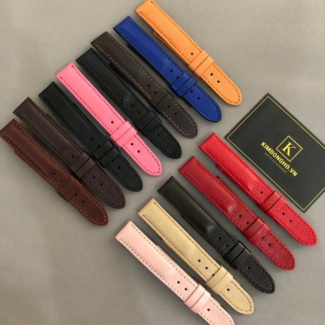 Dây da đồng hồ nam nữ da bò thật dập vân cá sấu bền đẹp (Chọn màu, chọn size)