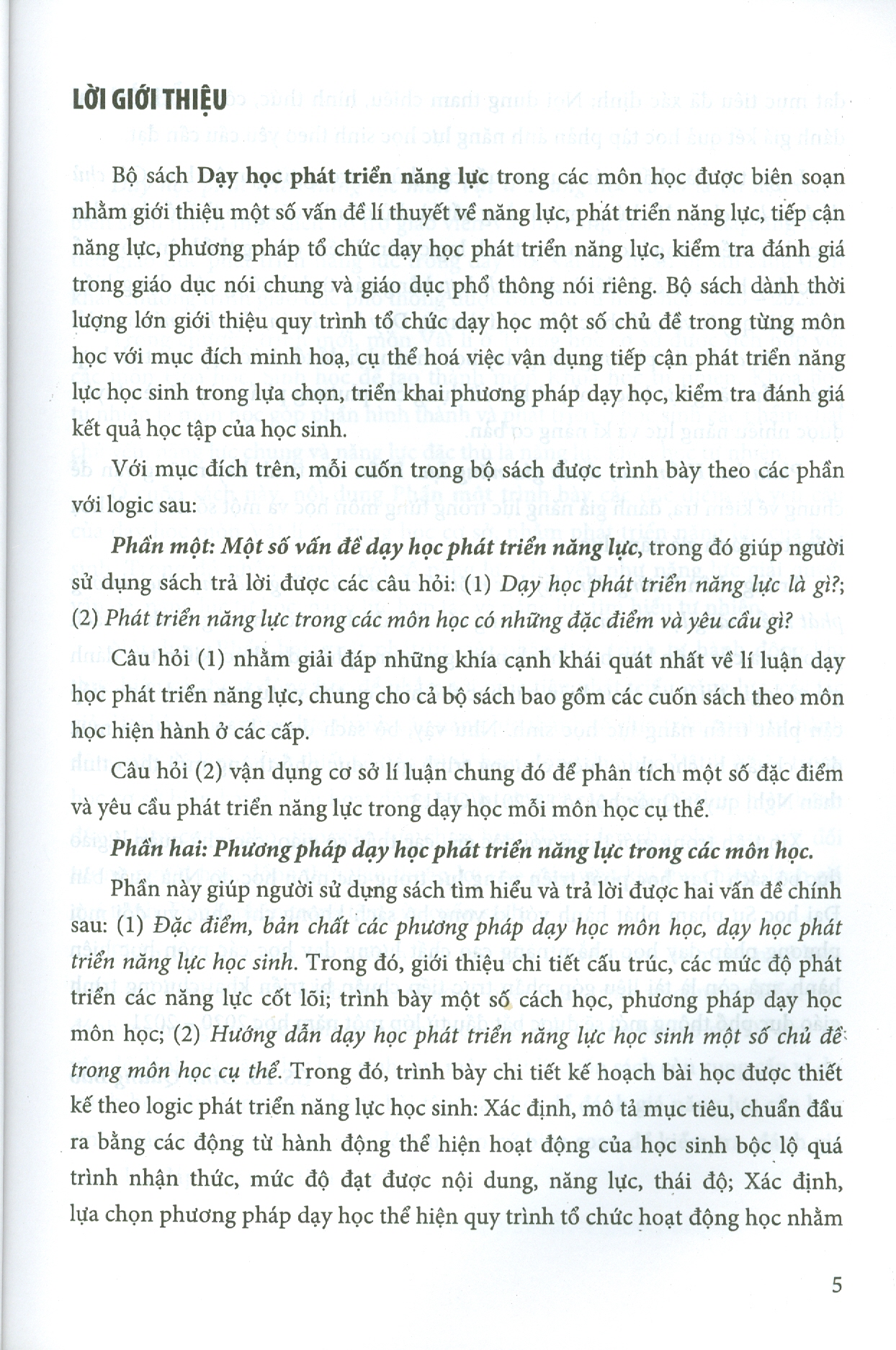 Bộ sách Dạy học phát triển năng lực được biên soạn nhằm giới thiệu một số vấn đề lí thuyết về năng lực, phát triển năng lực, tiếp cận năng lực, phương pháp tổ chức