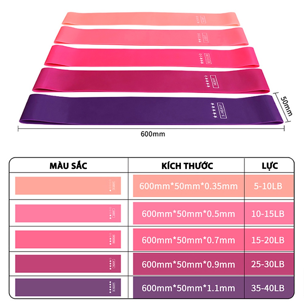 Sợi dây có các lực khác nhau, tuỳ cấp độ tập (Vui lòng theo dõi bảng kích cỡ)