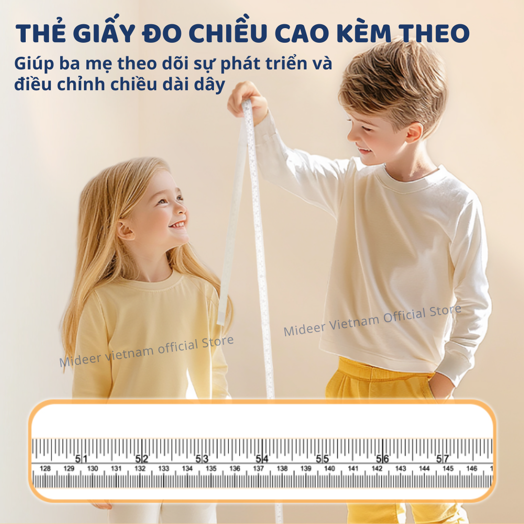 - THẺ GIẤY ĐO CHIỀU CAO KÈM THEO: Giúp ba mẹ theo dõi sự phát triển và điều chỉnh chiều dài dây.