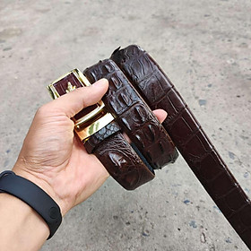 Mua tại TiktokThắt lưng da cá sấu nguyên con chạy từ gù cổ qua gai lưng đến vây đuôi của cá sấu. Mặt khóa tì tự động không rỉ sét.