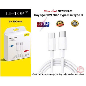 Dây sạc LI-TOP PD08 Công suất 60W chân Type C ra Type C, được dùng thử 30 ngày, Kim Ánh bảo hành chính hãng 12 tháng