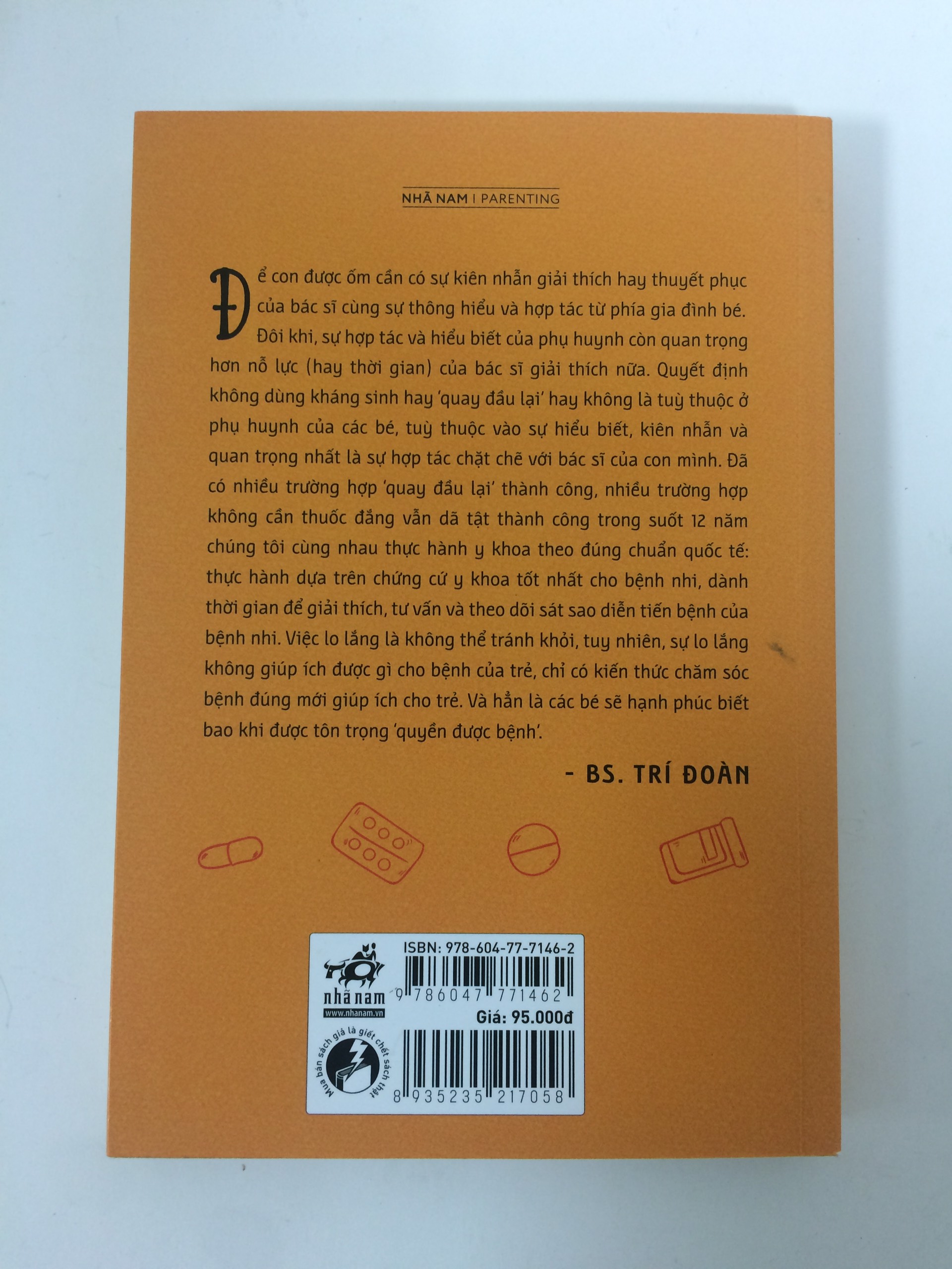 “Để con được ốm cần có sự kiên nhẫn giải thích hay thuyết phục của bác sĩ cùng sự thông hiểu và hợp tác từ phía gia đình bé. Đôi khi, sự hợp tác và hiểu biết của phụ huynh còn quan trọng hơn nỗ lực (hay thời gian) của bác sĩ giải thích nữa. Quyết định không dùng kháng sinh hay ‘quay đầu lại’ hay không là tuỳ thuộc ở phụ huynh của các bé, tuỳ thuộc vào sự hiểu biết, kiên nhẫn và quan trọng nhất là sự hợp tác chặt chẽ với bác sĩ của con mình. Đã có nhiều trường hợp ‘quay đầu lại’ thành công, nhiều trường hợp không cần thuốc đắng vẫn dã tật thành công trong suốt 12 năm chúng tôi cùng nhau thực hành y khoa theo đúng chuẩn quốc tế: thực hành dựa trên chứng cứ y khoa tốt nhất cho bệnh nhi, dành thời gian để giải thích, tư vấn và theo dõi sát sao diễn tiến bệnh của bệnh nhi. Việc lo lắng là không thể tránh khỏi, tuy nhiên, sự lo lắng không giúp ích được gì cho bệnh của trẻ, chỉ có kiến thức chăm sóc bệnh đúng mới giúp ích cho trẻ. Và hẳn là các bé sẽ hạnh phúc biết bao khi được tôn trọng ‘quyền được bệnh’.
