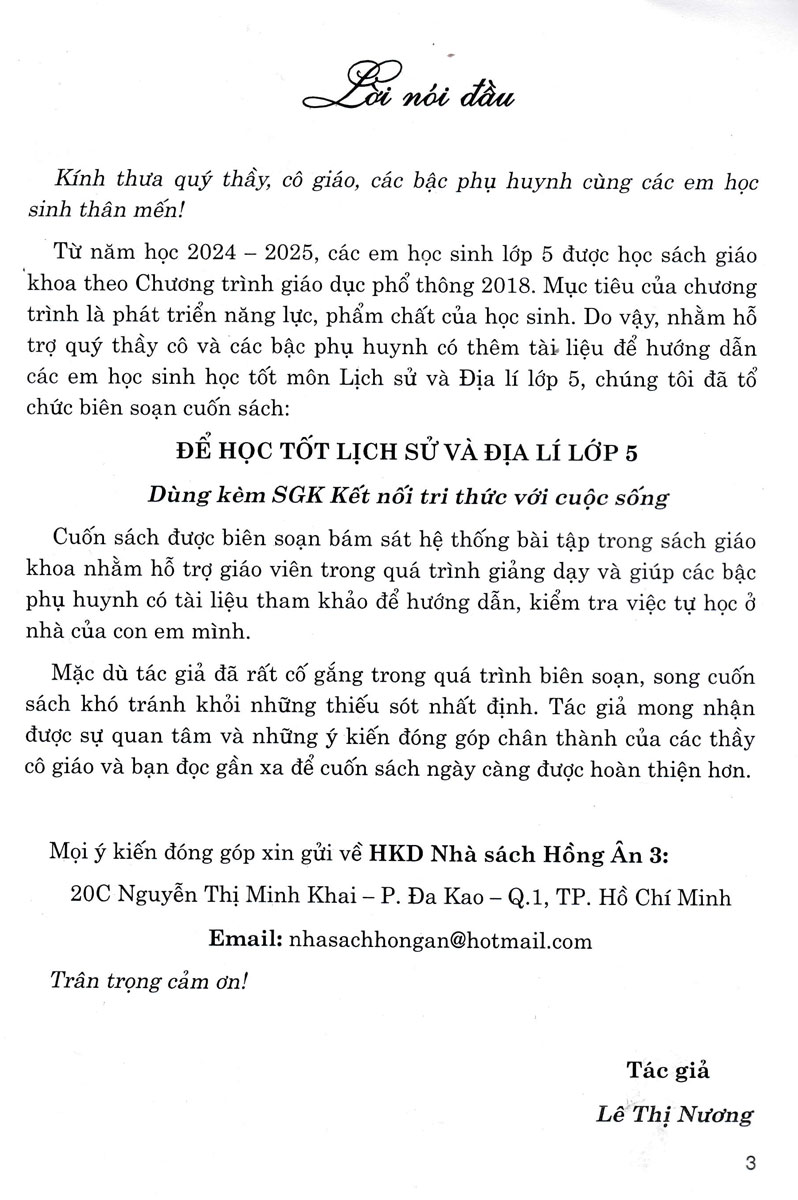 Từ năm học 2024 – 2025, các em học sinh lớp 5 được học sách giáo khoa theo Chương trình giáo dục phổ thông 2018. Mục tiêu của chương trình là phát triển năng lực, phẩm chất của học sinh. Do vậy, nhằm hỗ trợ quý thầy cô và các bậc phụ huynh có thêm tài liệu để hướng dẫn các em học sinh học tốt môn Lịch sử và Địa lí lớp 5, chúng tôi đã tổ chức biên soạn cuốn sách:
