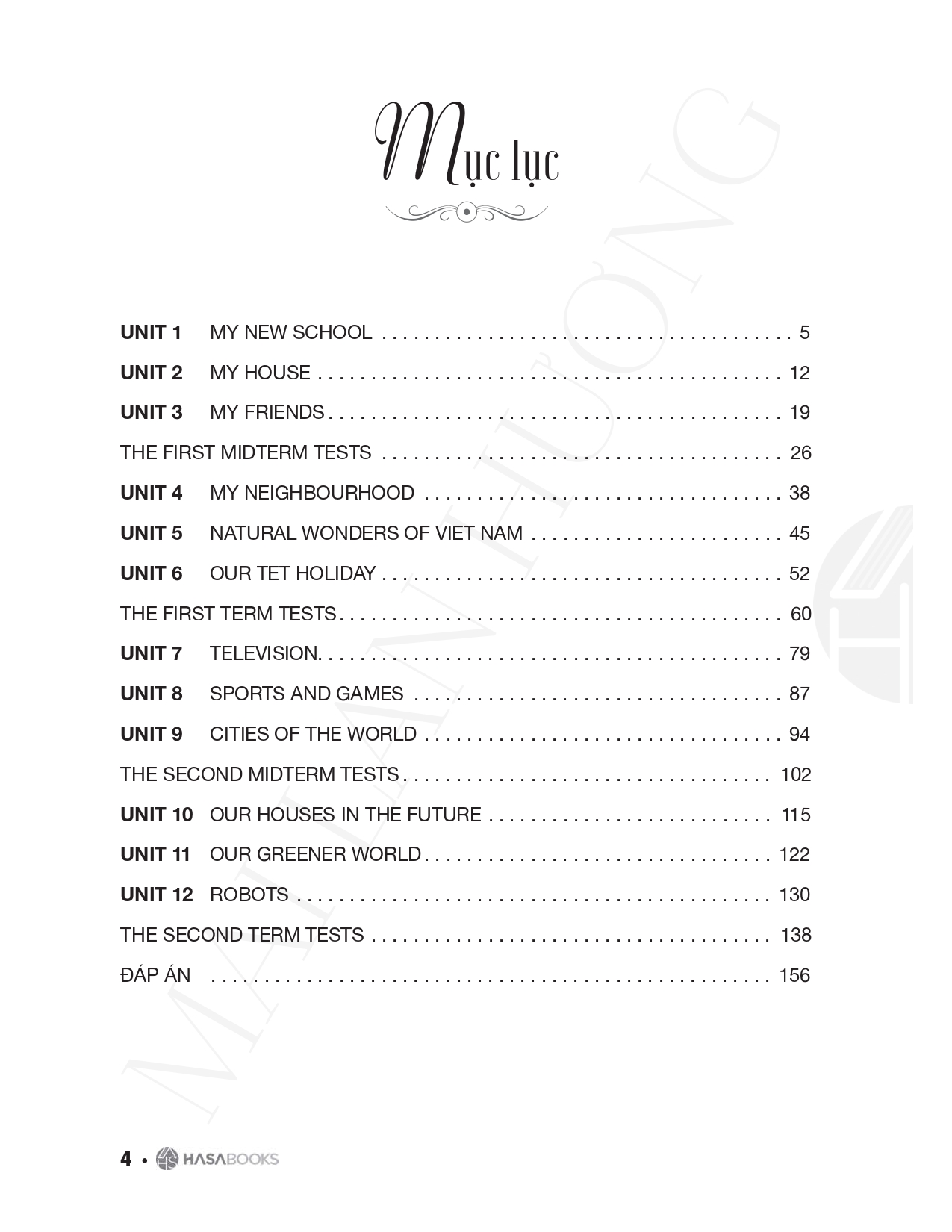 12 đề kiểm tra cuối học kỳ (Term tests): tổng hợp kiến thức 6 đơn vị bài học, giúp học sinh ôn luyện, chuẩn bị cho bài kiểm tra cuối học kỳ.