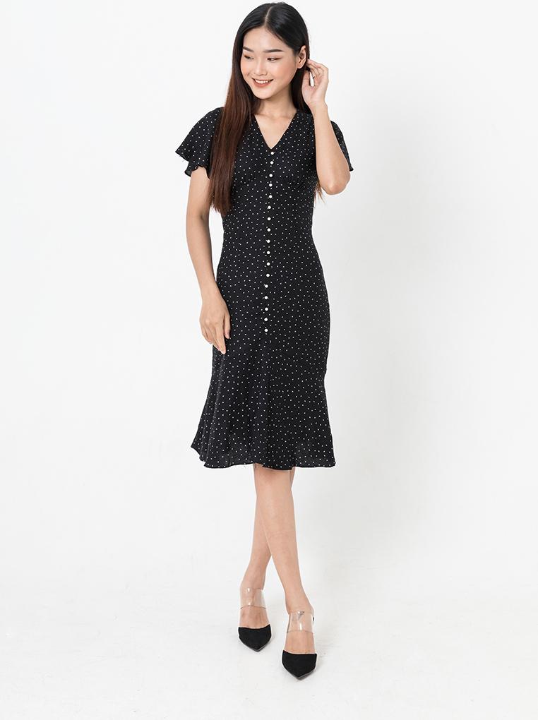 ✨De Leah - Đầm Ôm Đuôi Cá Cúc Trai - Đen
