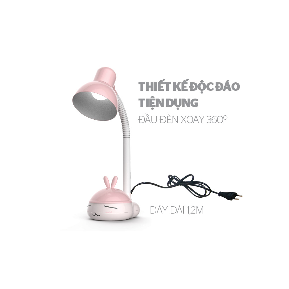 THIẾT KẾ ĐỘC ĐÁO BẮT MẮT Đèn bàn Sunhouse SHE-16LED-A6 làm bằng thép sơn không gỉ, vừa bền lại đảm bảo tính thẩm mỹ cao. Đế đèn bằng nhựa ABS tạo hình thỏ hồng dễ