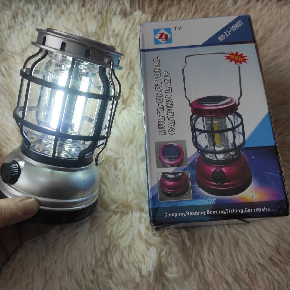 ✨Đèn Cắm Trại ZJ-1990T Dùng Pin Sạc Và Năng Lượng Mặt Trời Có Cổng USB Có Thể Sạc Điện Thoại