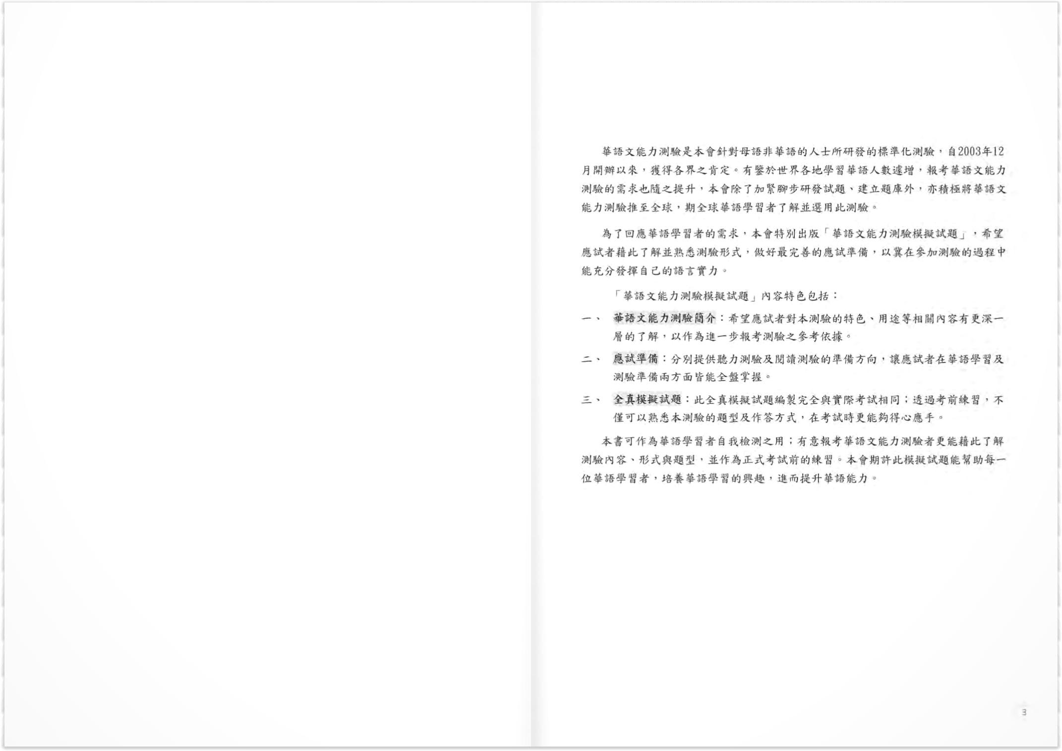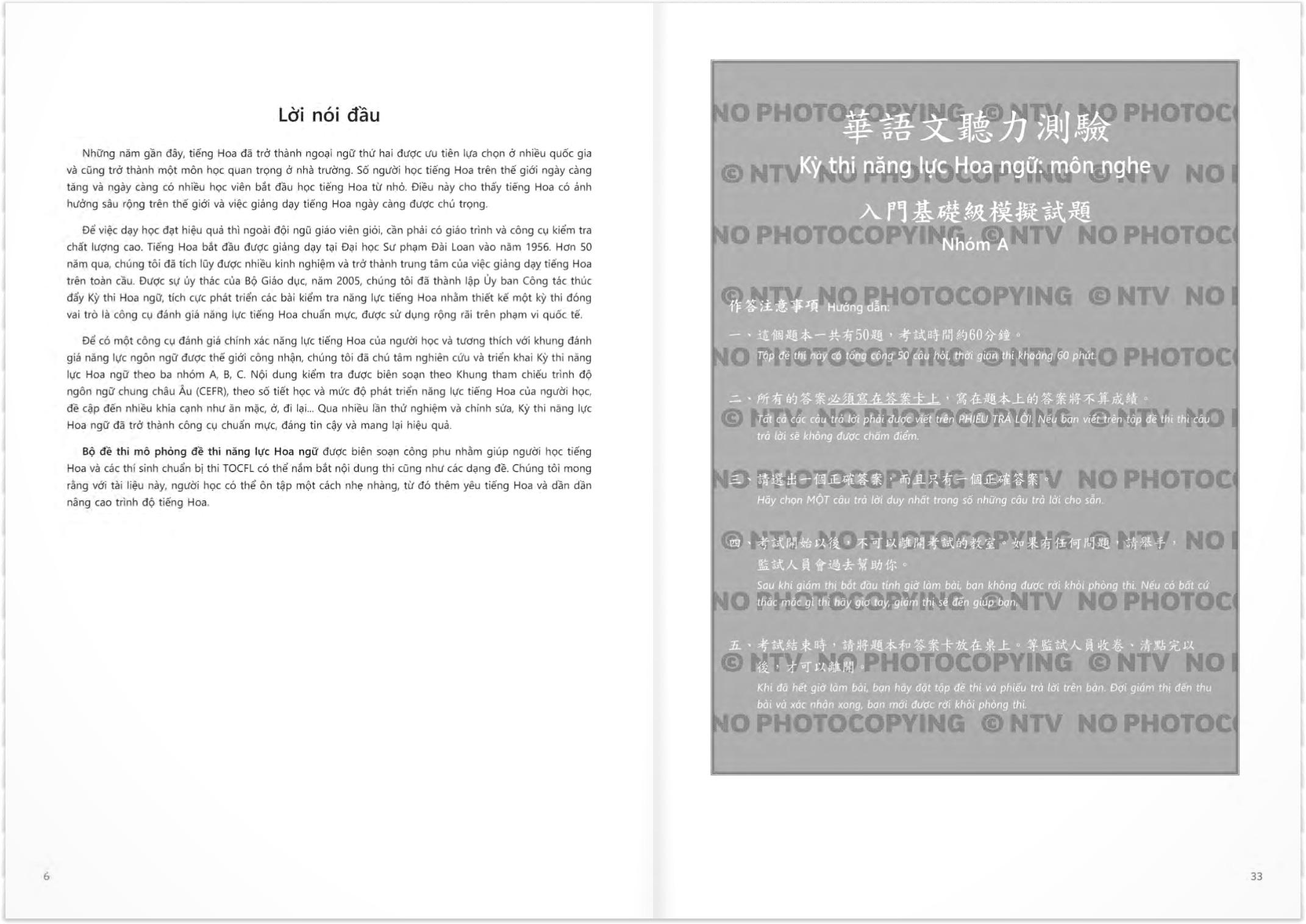 Những năm gần đây, số người mới học tiếng Hoa ngày càng tăng. Để giúp các học viên này có thể kiểm tra kết quả học tập của bản thân trong thời gian ngắn cũng như khích lệ họ tiếp tục học, chúng tôi đã chú tâm nghiên cứu và phát triển bài thi năng lực Hoa ngữ ở cấp độ chuẩn bị như xuất bản bộ đề thi mô phỏng ở cấp độ chuẩn bị. Bộ đề thi sẽ giúp các học viên mới học tiếng Hoa hiểu rõ hơn nội dung và cách thức thi đồng thời kiểm tra xem họ học có đúng phương pháp hay không.