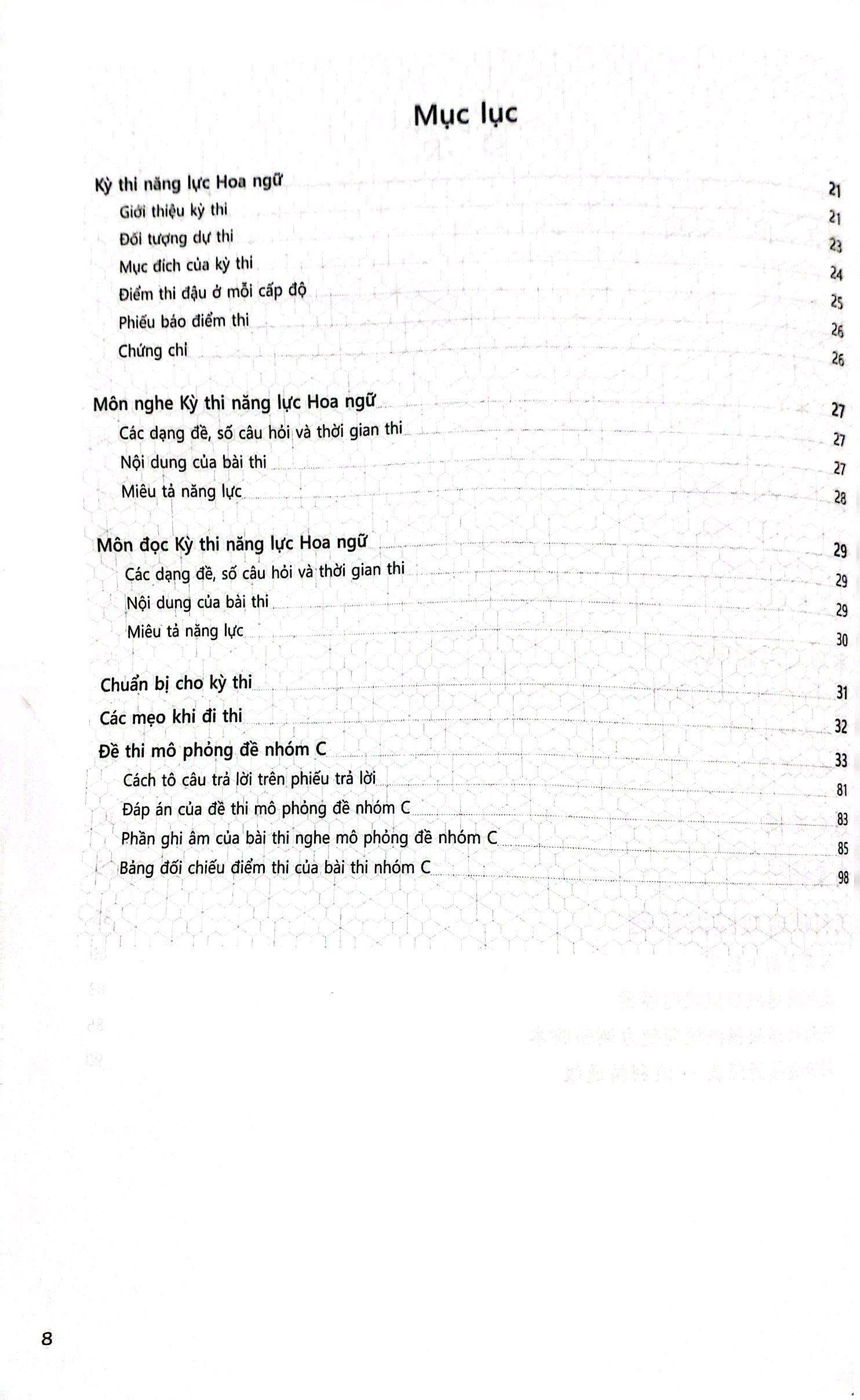 Những năm gần đây, số người mới học tiếng Hoa ngày càng tăng. Để giúp các học viên này có thể kiểm tra kết quả học tập của bản thân trong thời gian ngắn cũng như khích lệ họ tiếp tục học, chúng tôi đã chú tâm nghiên cứu và phát triển bài thi năng lực Hoa ngữ ở cấp độ chuẩn bị như xuất bản bộ đề thi mô phỏng ở cấp độ chuẩn bị. Bộ đề thi sẽ giúp các học viên mới học tiếng Hoa hiểu rõ hơn nội dung và cách thức thi đồng thời kiểm tra xem họ học có đúng phương pháp hay không.
