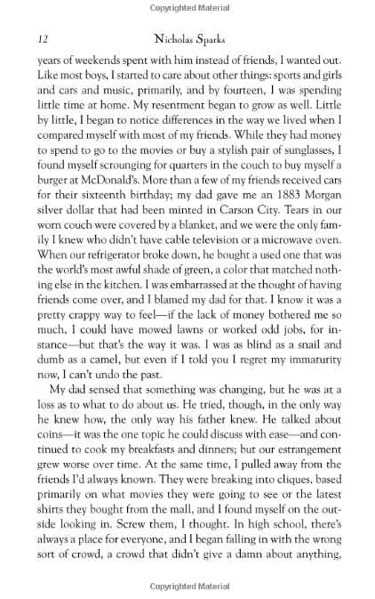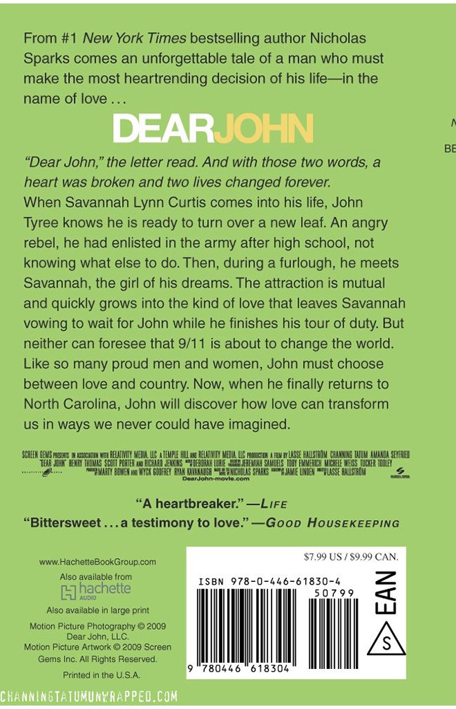 An angry rebel, John dropped out of school and enlisted in the Army, not knowing what else to do with his life--until he meets the girl of his dreams, Savannah. Their mutual attraction quickly grows into the kind of love that leaves Savannah waiting for John to finish his tour of duty, and John wanting to settle down with the woman who captured his heart. But 9/11 changes everything. John feels it is his duty to re-enlist. And sadly, the long separation finds Savannah falling in love with someone else. "Dear John," the letter read...and with those two words, a heart was broken and two lives were changed forever. Returning home, John must come to grips with the fact that Savannah, now married, is still his true love--and face the hardest decision of his life.