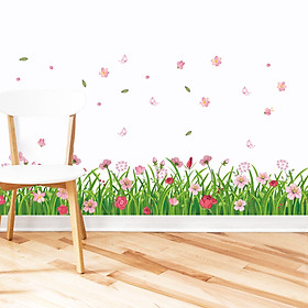 Trang trí chân tường bằng decal dán hoa cỏ.