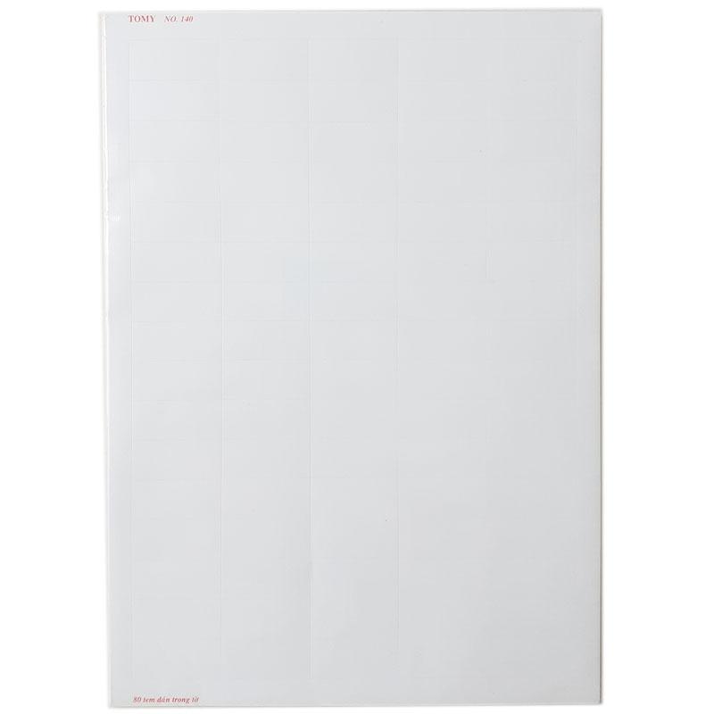 Giấy in mã vạch A4 Tomy 140 có 80 tem bế sẵn trên tờ giấy khổ A4 dùng để in mã vạch tem nhãn, không cần dùng máy in mã vạch mà in bằng máy in laser văn phòng, máy in&photocopy 2in1.