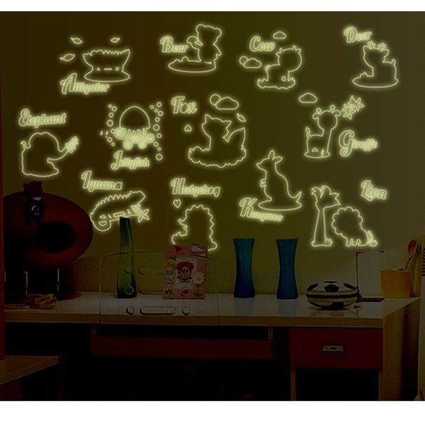 Decal dán tường Dạ quang đàn thú với các hình con vật thân thiện với bé, các tên động vật bằng tiếng anh giúp phụ huynh có thể cho bé sớm nhận biết về mặt chữ. Và đặc biệt là dạ quang ban đêm sẽ bé yêu thích căn phòng của mình nhiều hơn.