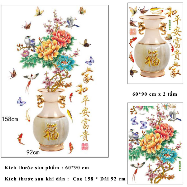 Kích thước :Decal dán tường lọ hoa đào SK2019AB
