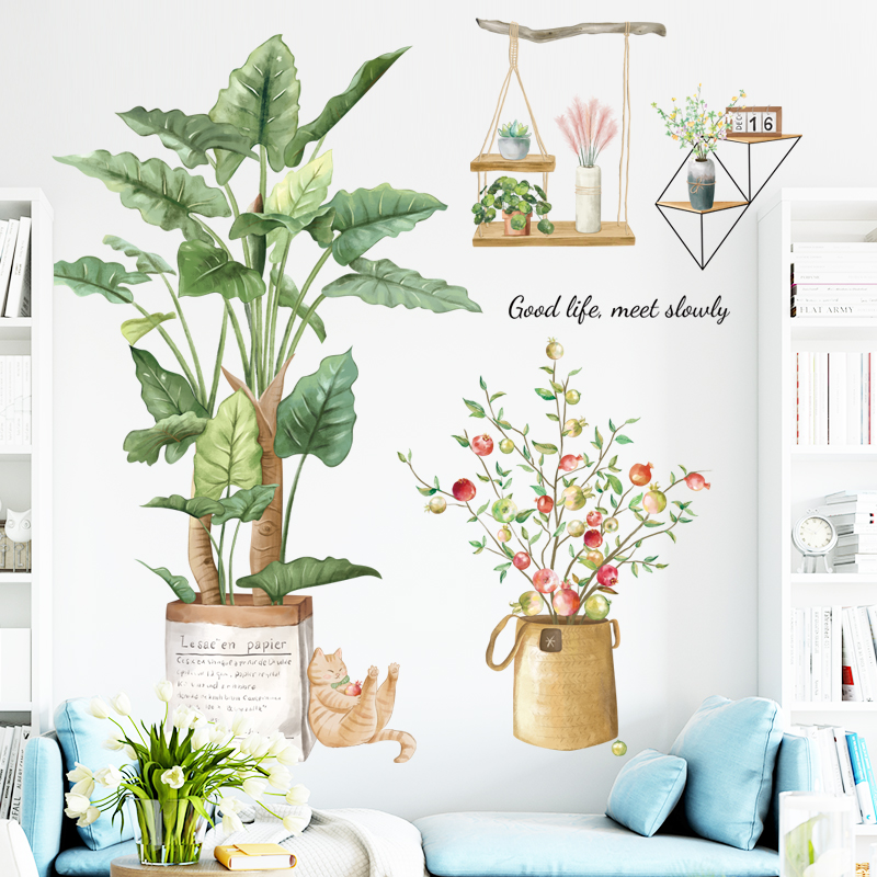 ✨Decal dán tường Sticker dán tường in chất lượng cao có keo mặt sau mẫu Cây Bã Trầu Vintage ZH72