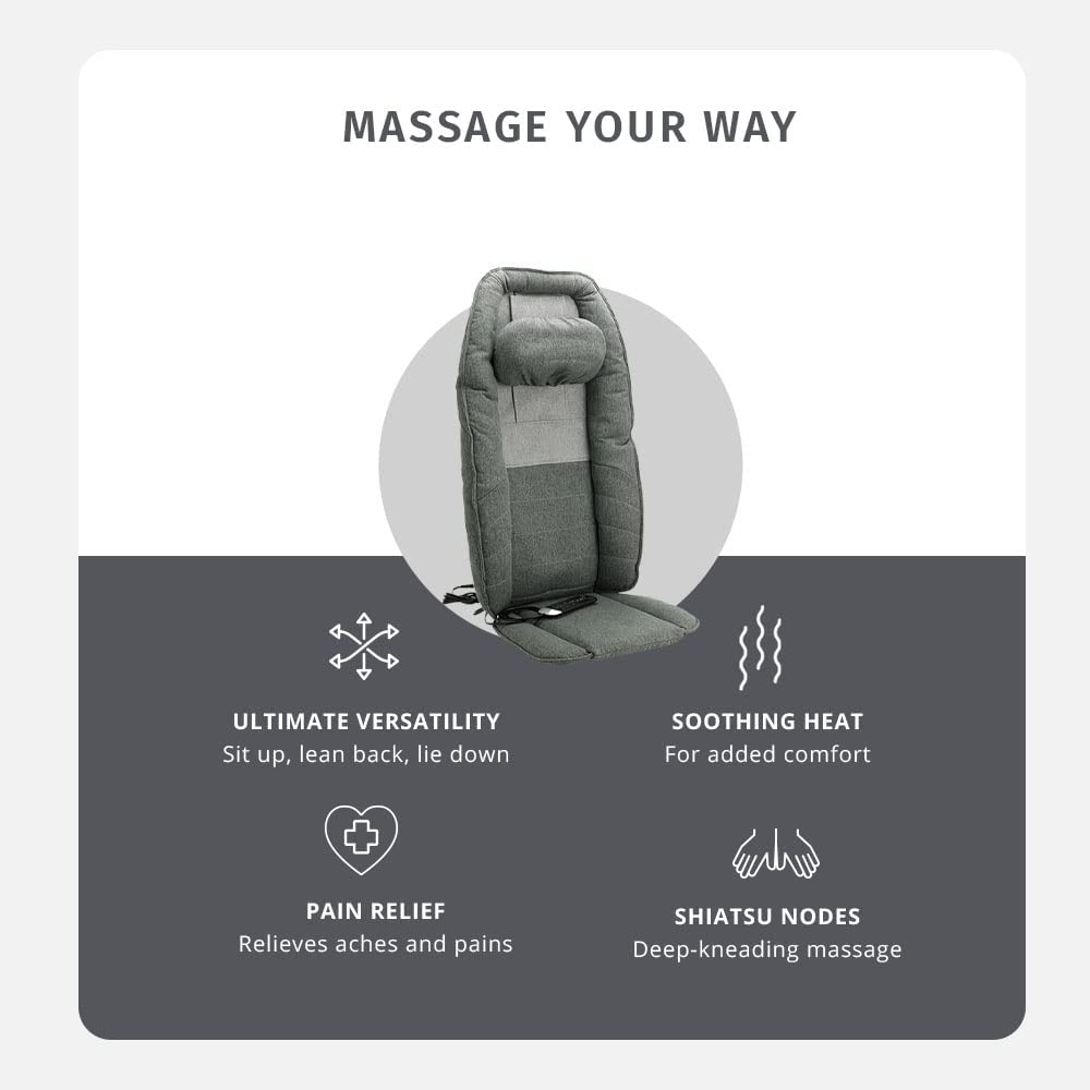 Đệm massage MCS-1010HJ cho phép bạn tận hưởng massage shiatsu cho dù bạn đang ở tư thế ngồi, ngả lưng hay nằm. Bạn có thể sử dụng trên ghế sofa hay trải trên bề mặt phẳng để tận hưởng massage ở tư thế nằm.
