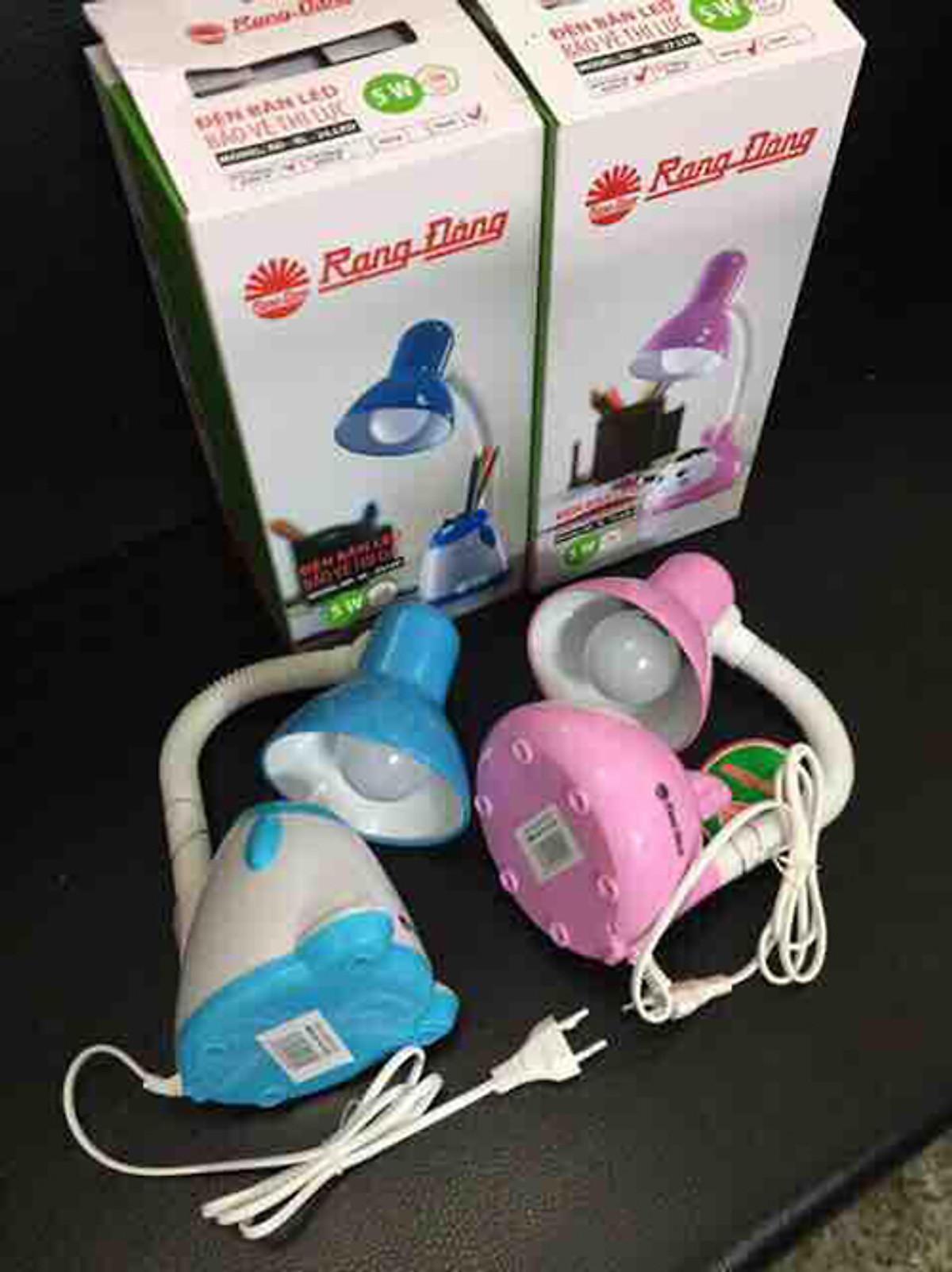 Đèn Bàn Rạng Đông Chống Cận LED 5W • Model: • Công suất: 5W/7W • Điện áp: 220V/50Hz • Nhiệt độ màu: 6500K (Trắng)/ Vàng(3000K)/ Đổi 3 màu ánh sáng • Màu đèn: Xanh/ Hồng