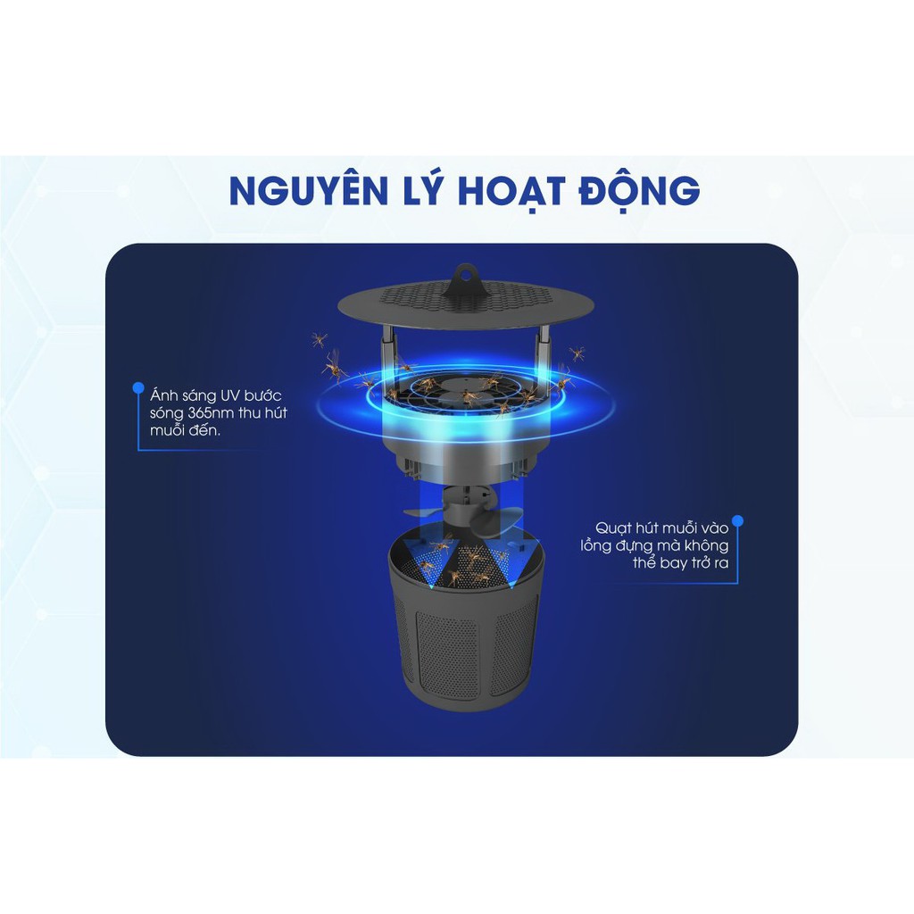- Muỗi khi bị hút vào ngăn đựng tự chết trong 48 giờ, không gây tiếng nổ, không tạo mùi khét.