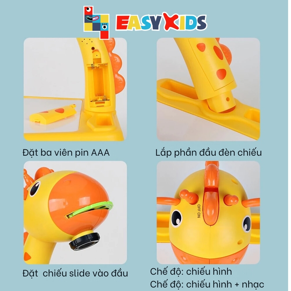 Máy Chiếu Hình Hươu và Nhạc: Sản phẩm đi kèm với máy chiếu hình hươu vui nhộn và âm nhạc dễ thương, tạo ra một không gian vui vẻ và sáng tạo cho bé.