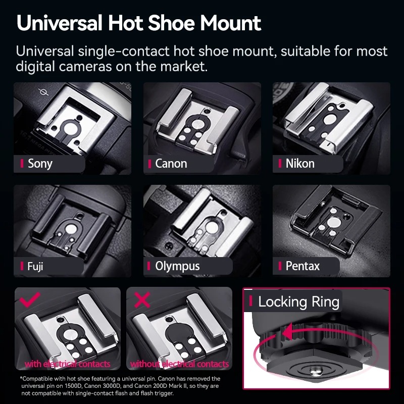 - Khả năng tương thích rộng: Ulanzi F12 có đế gắn tiêu chuẩn tương thích với nhiều thương hiệu máy ảnh lớn như: Sony / Canon / Nikon / Panasonic / Olympus. v.v.
