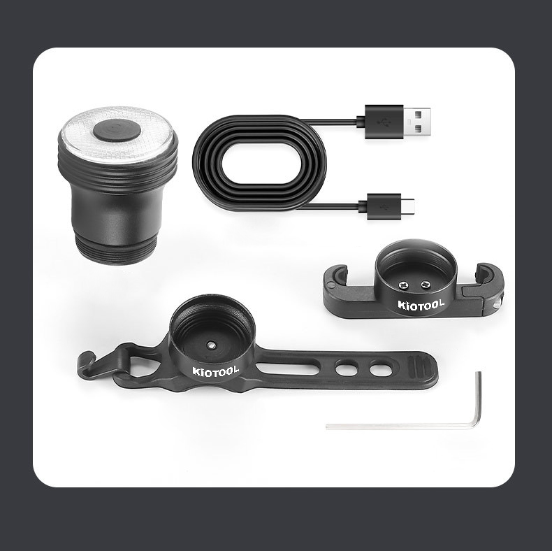 Đèn hậu Xi Nhan xe đạp Kiotool không dây pin sạc Bộ sản phẩm gồm: hộp đựng, đèn hậu xin nhan, điều khiển đèn xin nhan gắn ghidong tặng kèm dây sạc Đèn xin nhan
