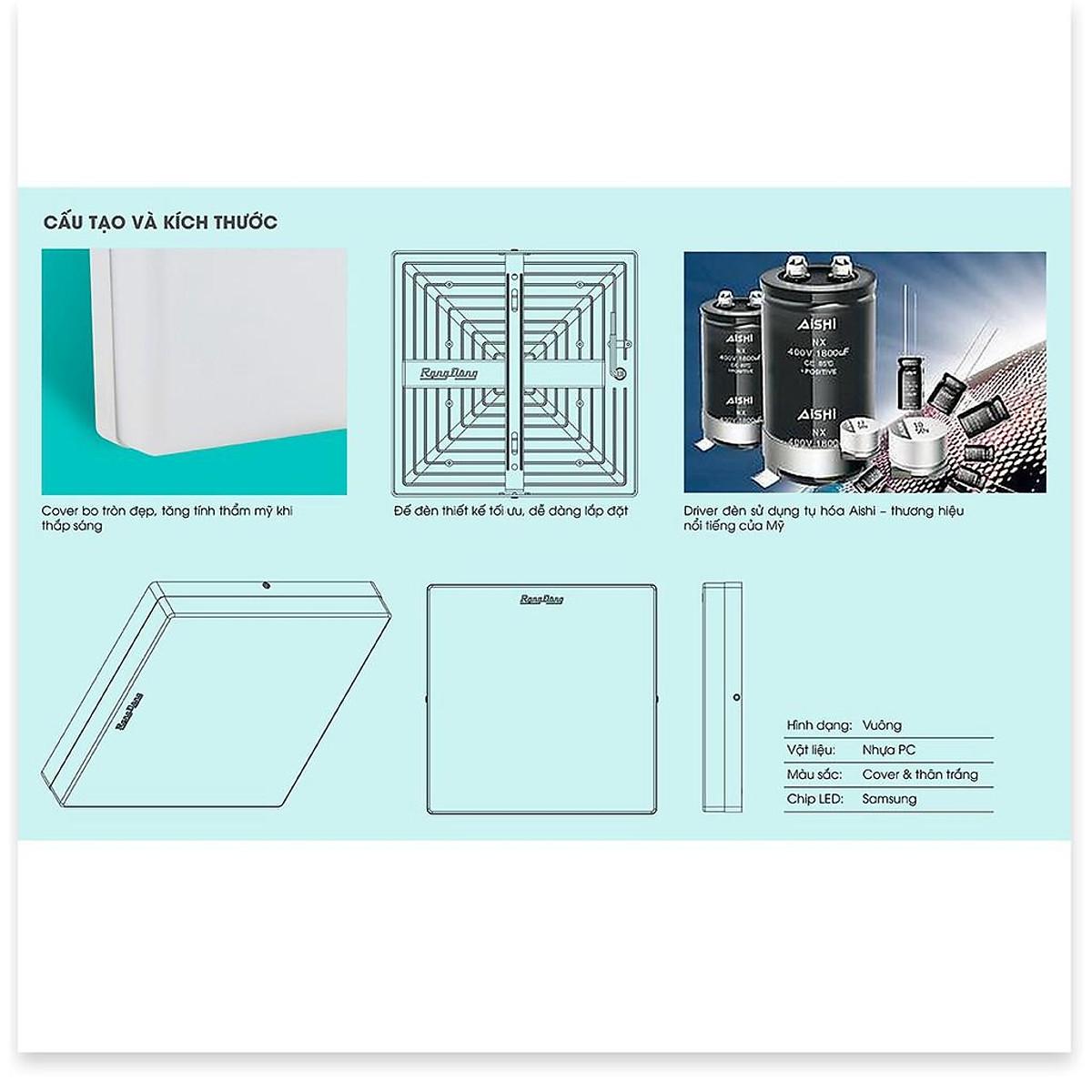 Đèn Led ốp trần thiết kế nhằm thay thế đèn ốp trần huỳnh quang với khả năng tiết kiệm điện, độ tạo màu và độ bền cao, không phát ra các tia tử ngoại hay
