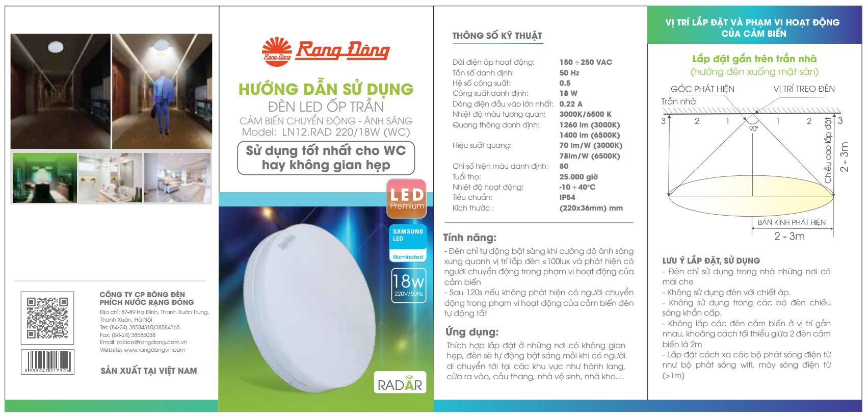 Đèn Led ốp trần cảm biến Rạng Đông, Model: LN12.RAD 220/18W(HL), Liên hệ mua hàng: 0977037837